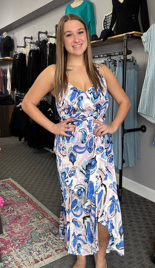 Blue/Lilac Ruffle Wrap Cami Dress