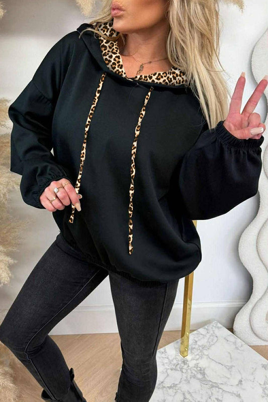 Leopard Contrast Drawstring Hoodie