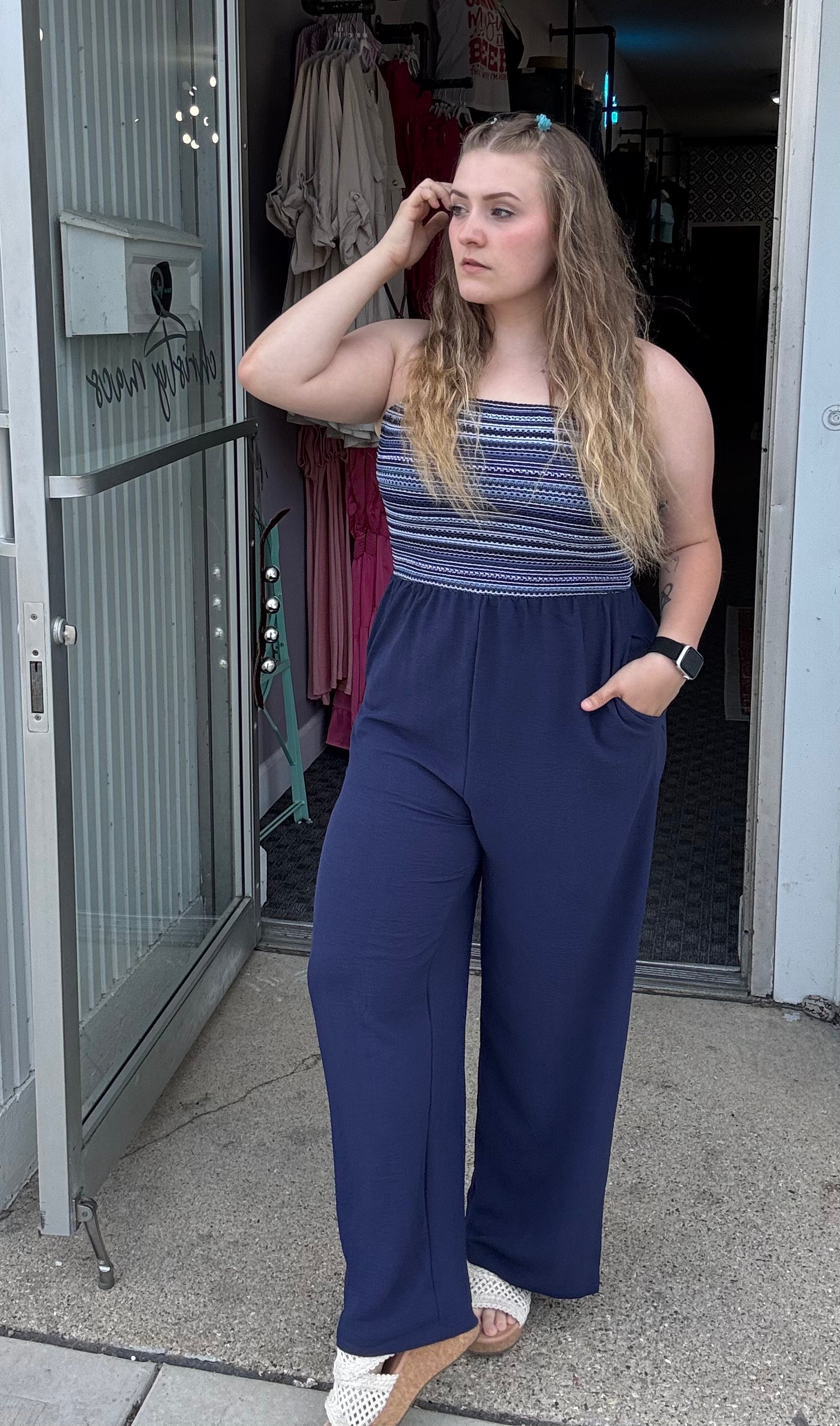 Get ready to turn heads in this fun, flirty, and sophisticated one piece striped jumpsuit. From the playful stripes to the elegant cut, this jumpsuit is sure to make a statement. Perfect for any occasion, you'll feel confident and stylish in this must-have piece.