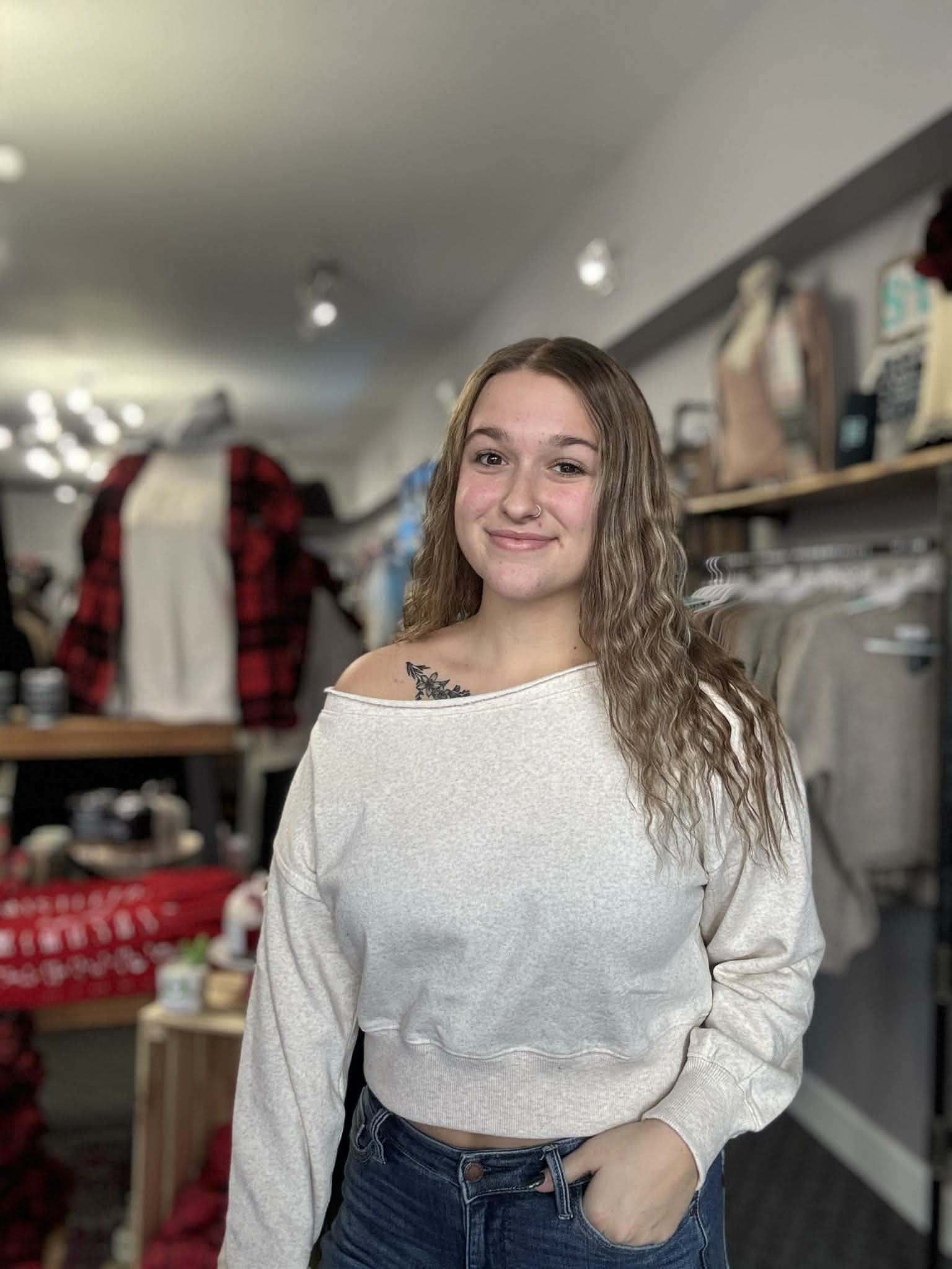Christy is wearing the Small