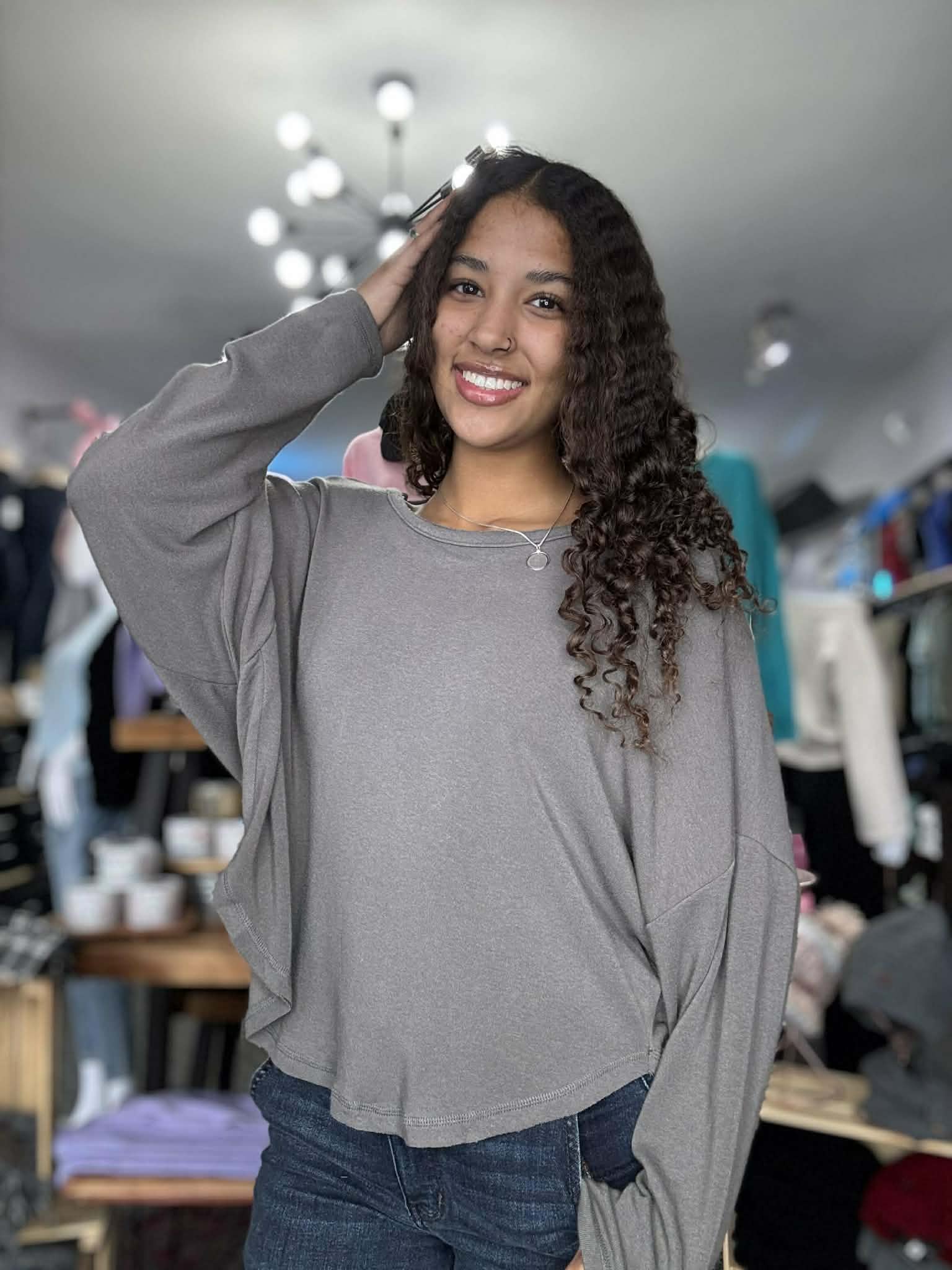 Wrap yourself in cozy comfort with this Long Sleeve Batwing Knit Top. Its soft fabric and relaxed batwing sleeves create a fun, super cute look perfect for lounging or casual outings. Embrace playful style while staying snug all day long.