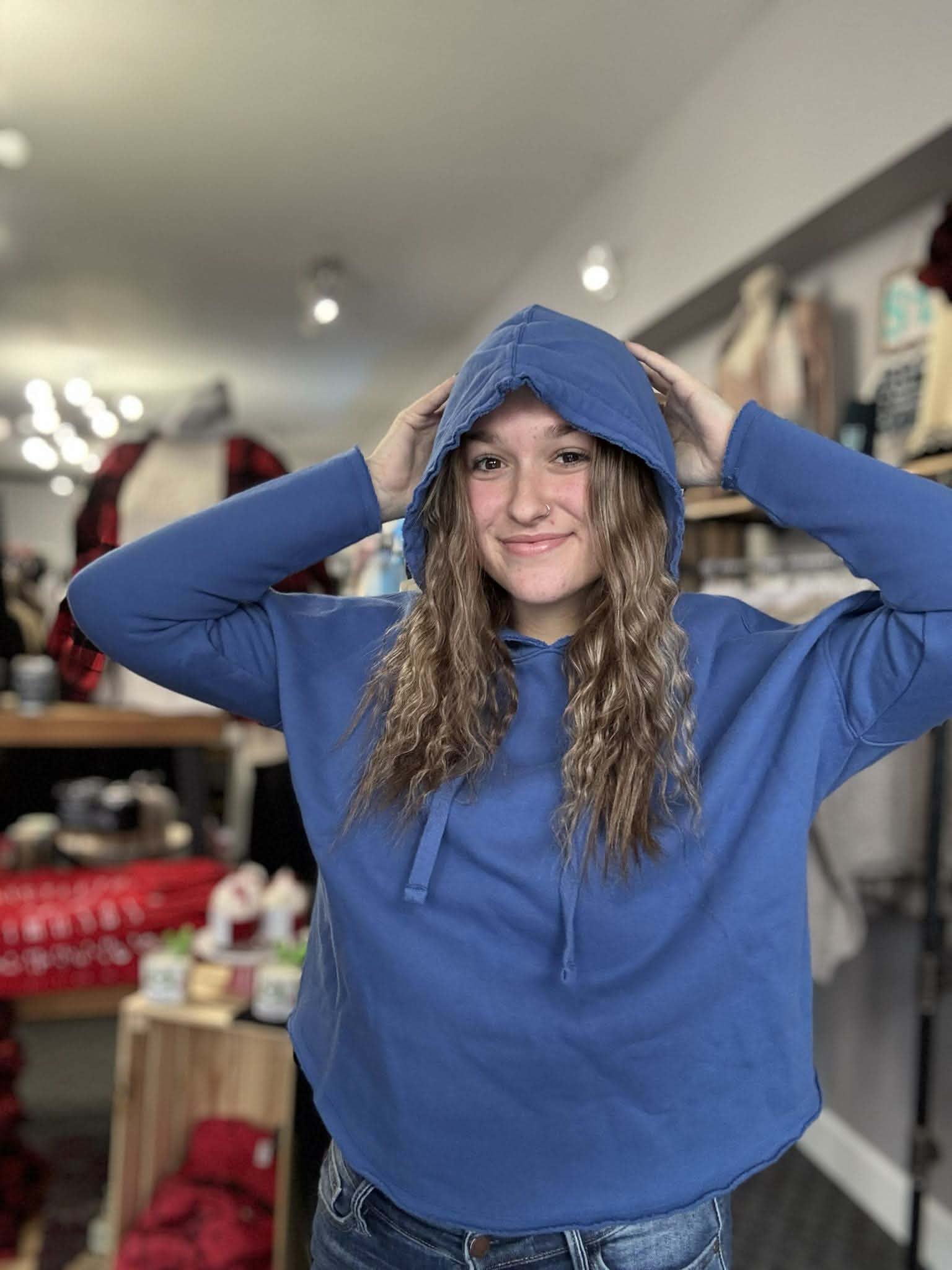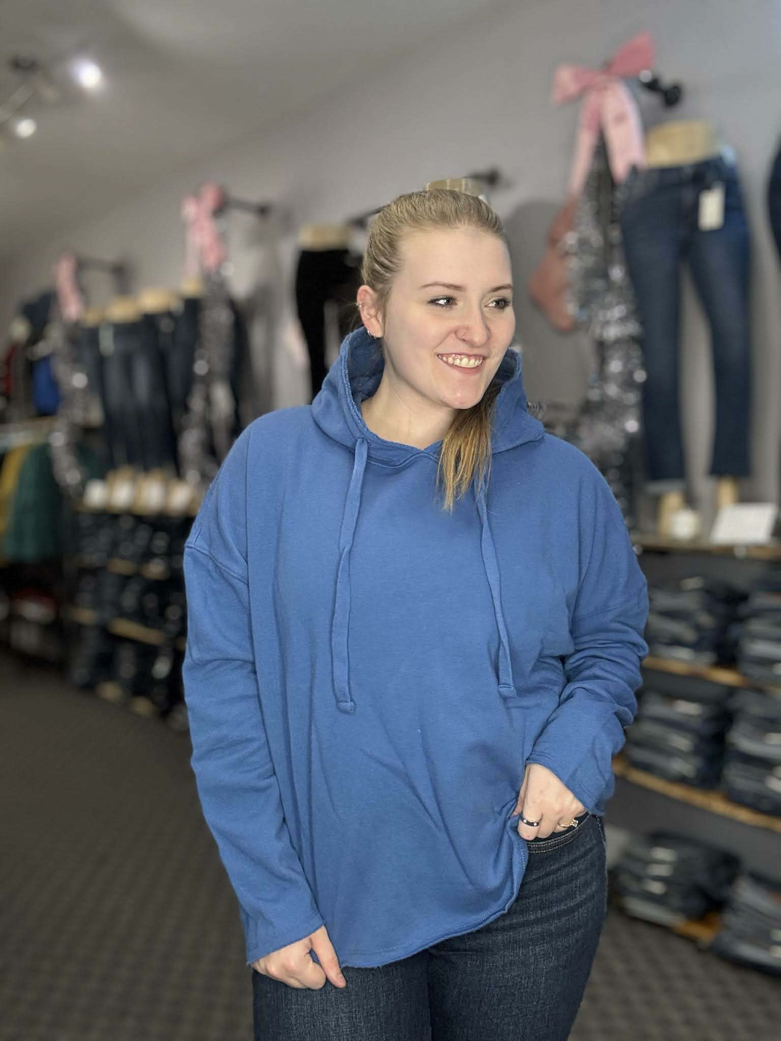 Loose-fit hoodie sweater made from durable 100% cotton for warmth and comfort. Features a big drawcord and raw-edge hem for a loved, worn-in vibe. Garment-washed for a uniquely soft feel. Perfect for errands, post-gym, or casual everyday wear!