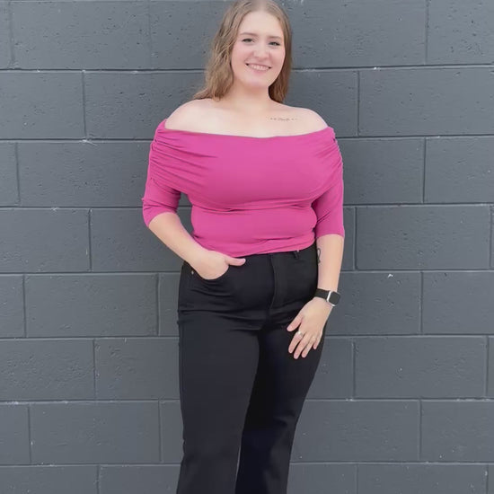 Turn heads and stay cozy in this Off The Shoulder Ruched Top. Its playful ruched design and sexy neckline bring flirty vibes, while the soft fabric keeps you warm and comfy all day. Perfect for adding a cute, confident touch to any outfit.