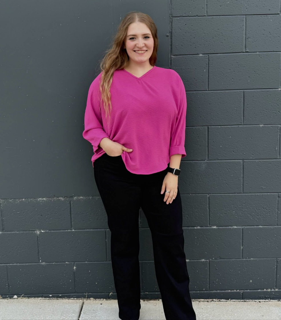 Christy is wearing size 5. (wears a size 7 skinny)