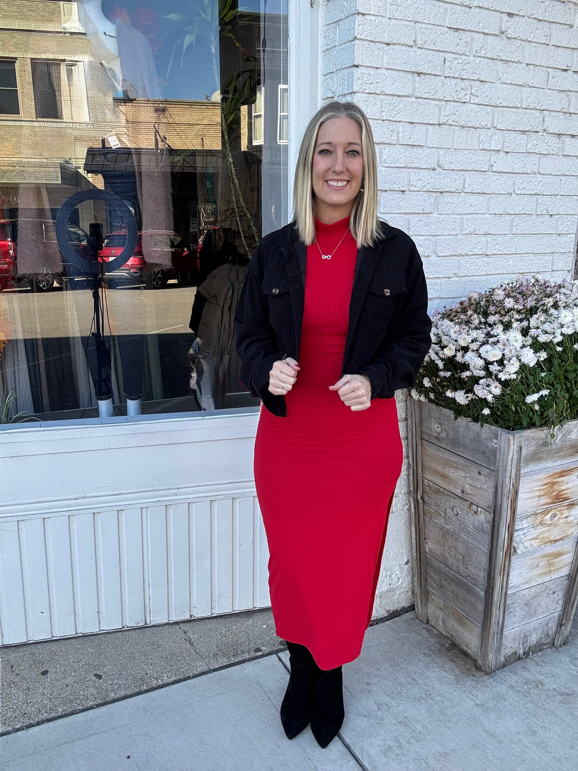 This bodycon dress is a sleek and flirtatious addition to your wardrobe. The ribbed fabric hugs your curves while the sleeveless design shows off your shoulders. Soft and flattering, this dress is perfect for a fun night out!