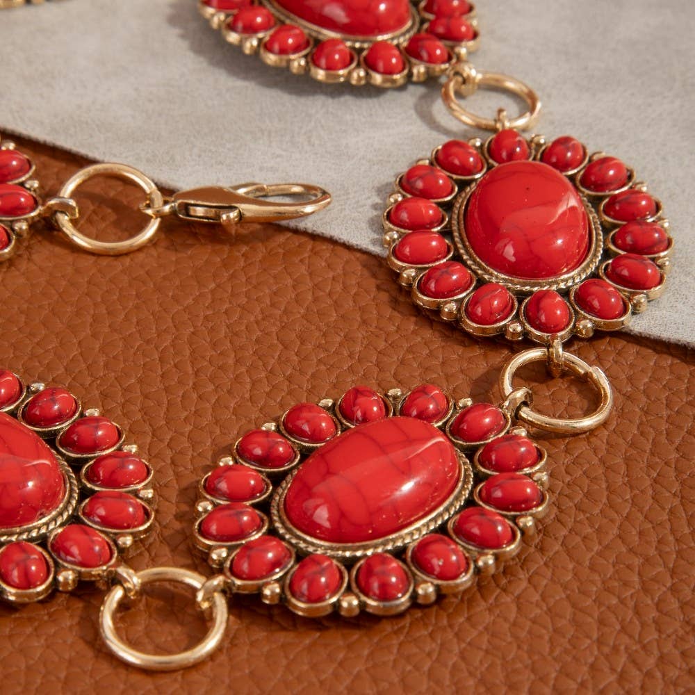 This chain belt brings a stunning western oval concho disc style. Witness the perfect fusion of style and functionality as this chain belt effortlessly complements your lifestyle.