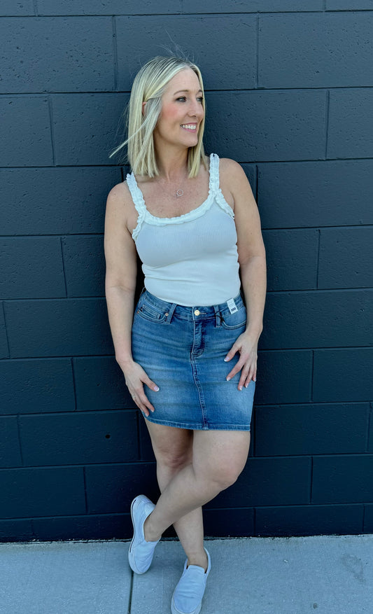 Reg/Plus Judy Blue Tummy Control Denim Skirt